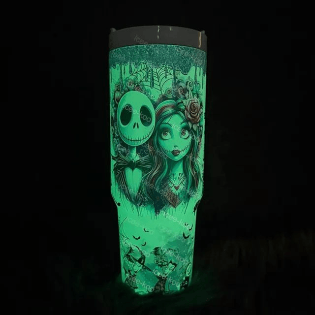 Sip in spooky style with the Glow-in-the-Dark Sally x Jack Skellington 40oz Tumbler. Crafted from durable stainless steel, this large-capacity tumbler keeps your drinks hot or cold while glowing beautifully in low-light settings. Perfect for fans, collectors, or everyday use, it combines iconic character design with practical insulation—ideal for home, work, travel, or gifting.